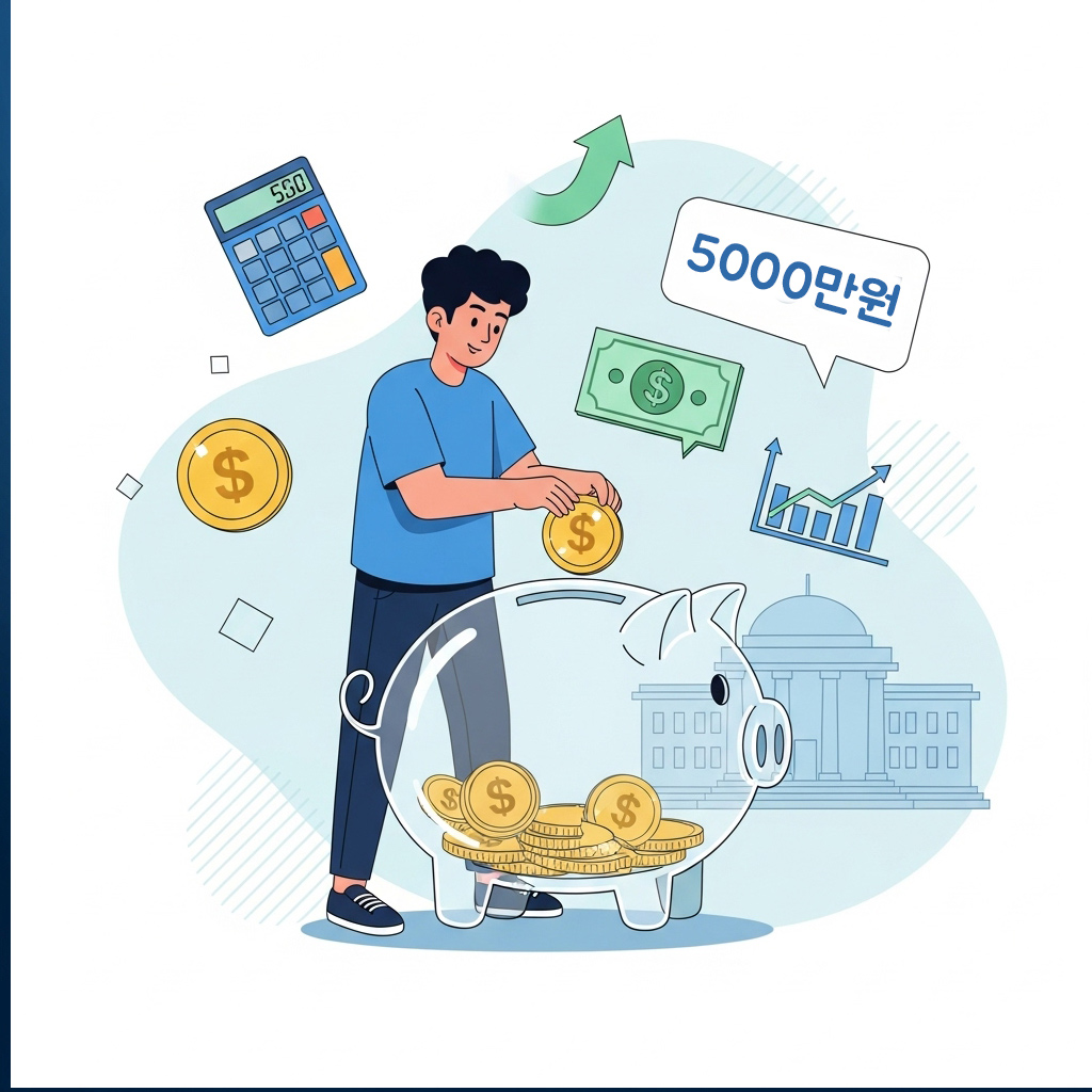 매월 70만 원씩 5년간 납입 시 원금 4,200만 원 + 정부기여금 + 이자로 약 5,000만 원 목돈 마련 가능!
